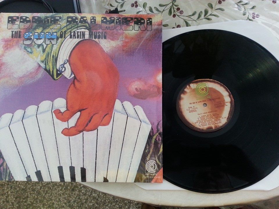 Fue una madrugada de principios del año 1974 cuando el alboroto me despertó. Mi madre y mi padre recibían con alborozo al hijo artista que regresaba de Nueva York con un acetato en sus manos. No tenía idea de lo que sucedía, ni, todavía en aquel momento, lo que era un acetato. Solo recuerdo que, aún medio dormido, tomé en mis manos aquel objeto plano y cuadrado con un retrato al frente que mostraba una gigantesca mano roja que bajaba del cielo a tocar un piano, The sun of latin music, decía en letras también grandes. Mi padre abrió el objeto y extrajo el disco negro con un orificio en el medio, lo colocó en el tocadiscos tipo consola de madera que había en la sala y lo puso a dar vueltas y a sonar a todo volumen. Mientras yo embelesado me entretenía viendo el coco que tenía el disco en el centro con letras pequeñas en inglés y en español, los vecinos se levantaban y llegaban a la casa a compartir el jolgorio que se había formado. ¡Mi hermano cantaba en el tocadiscos!